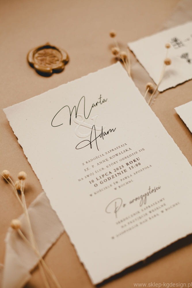 Podkreśl wyjątkowość swojej uroczystości ślubnej dzięki zaproszeniom w stylu boho z tłoczeniami, które zachwycą gości swoją naturalną elegancją.