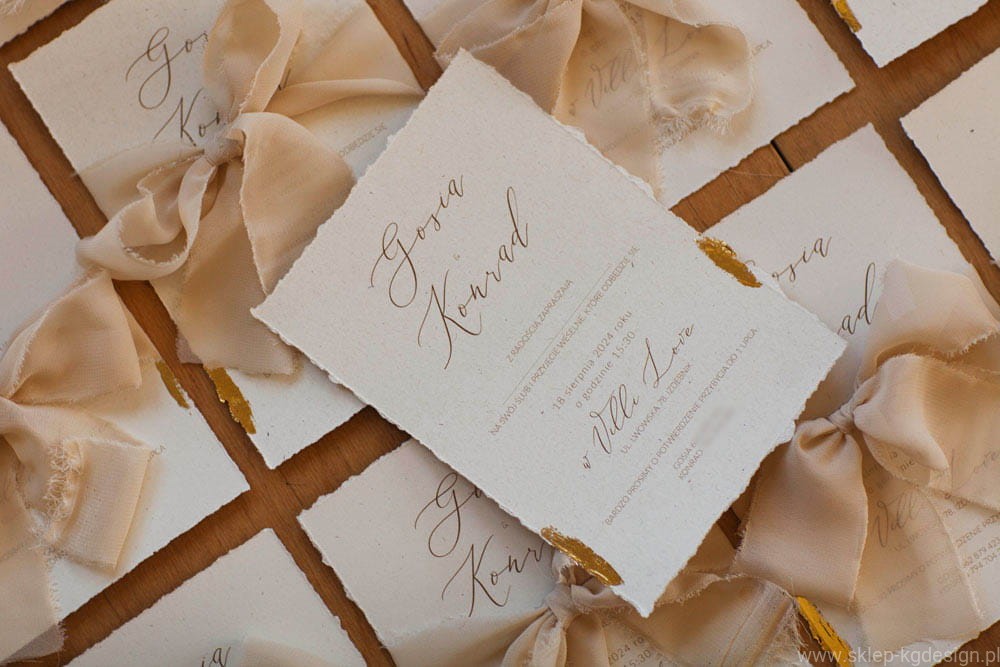 Złocenia – delikatne, ręcznie wykonane złote akcenty, które dodają zaproszeniom blasku i elegancji.