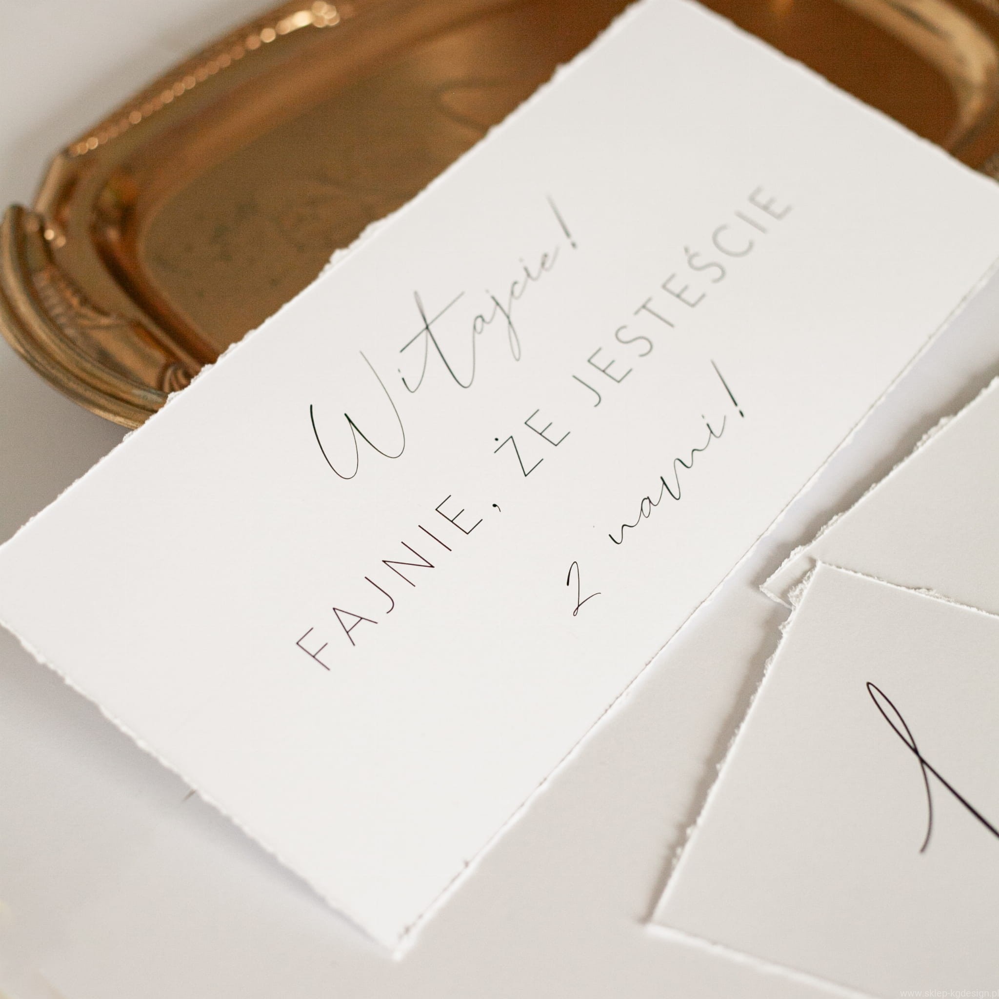 Karta powitalna z napisem. Biała minimalistyczna.