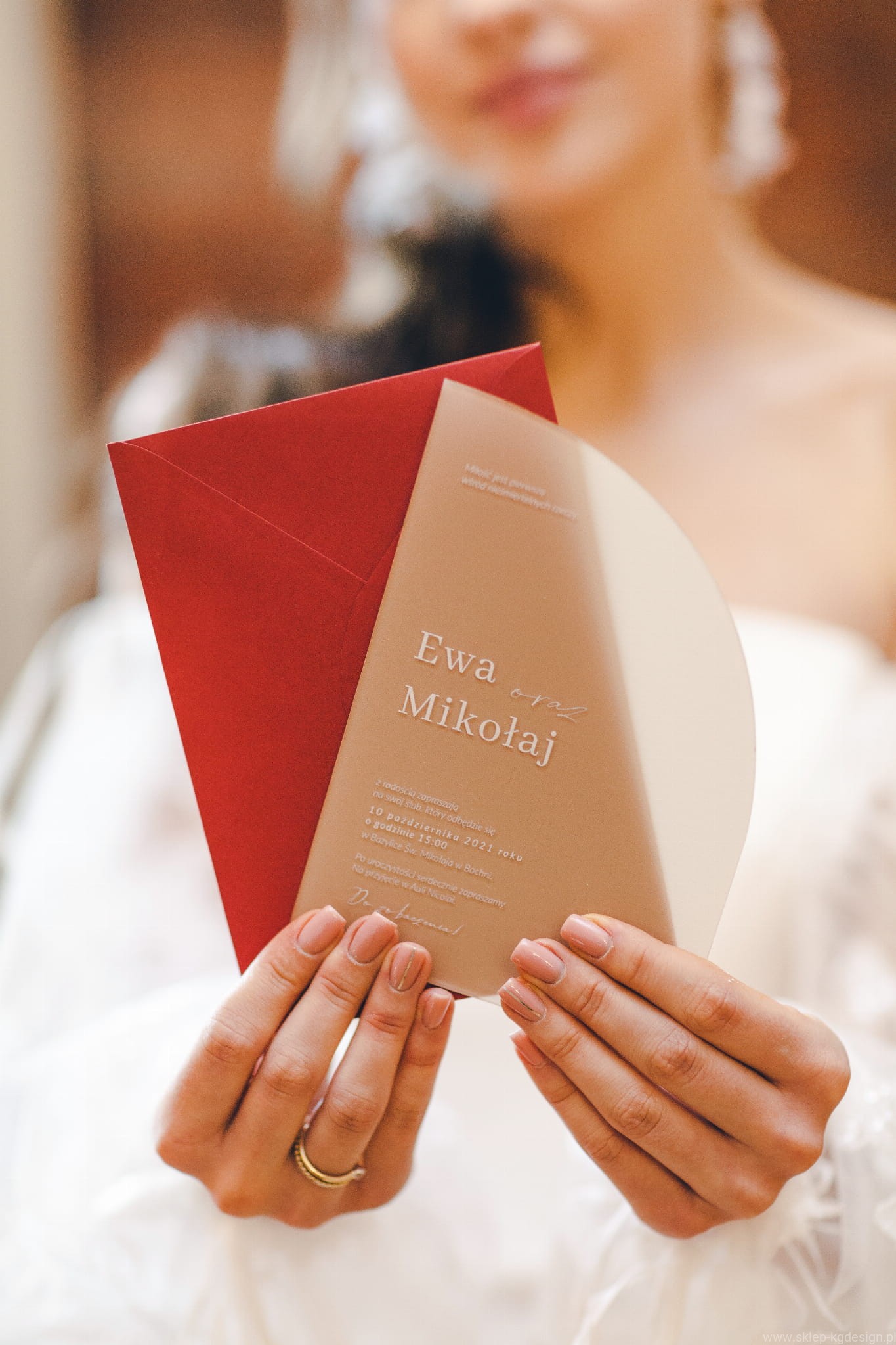 Minimalistyczne i delikatne zaproszenie w nietypowej formie.