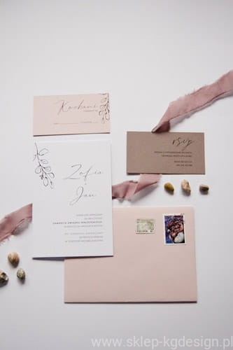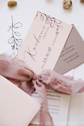 Minimalistyczne zaproszenia z eukaliptusem - różowe