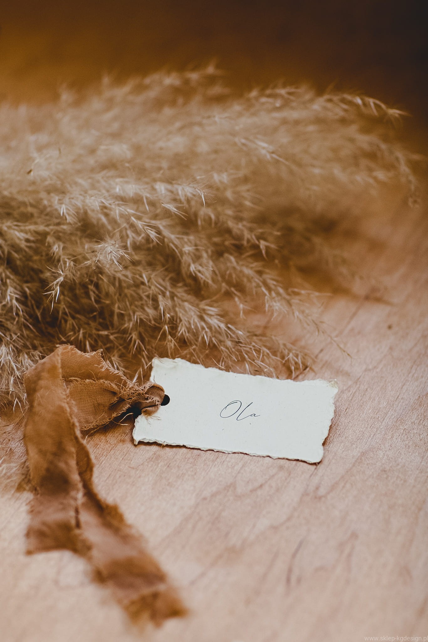 PRÓBKA Winietki w stylu boho na rwanym papierze drukowana na na kremowym, eco z wtrąceniami.