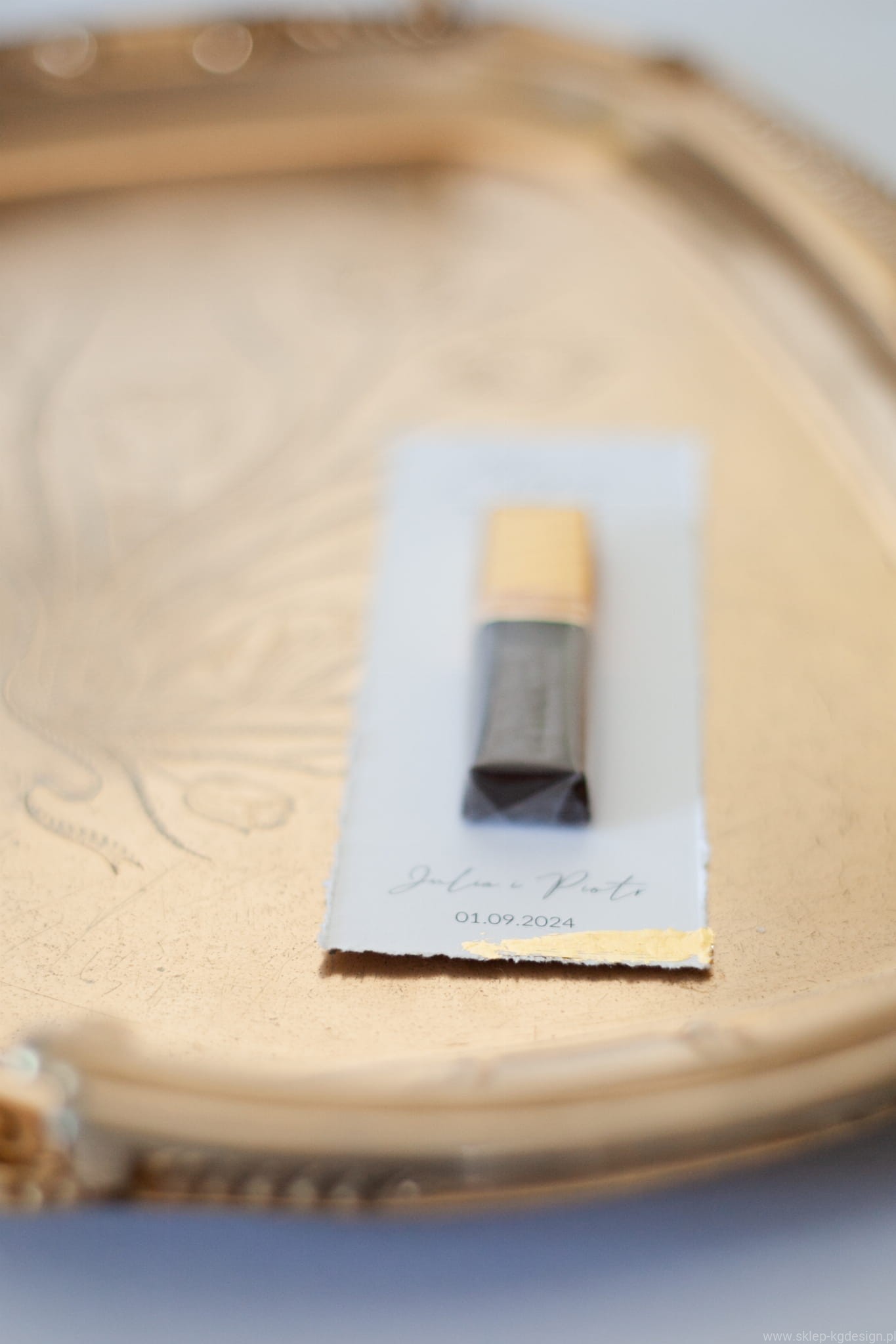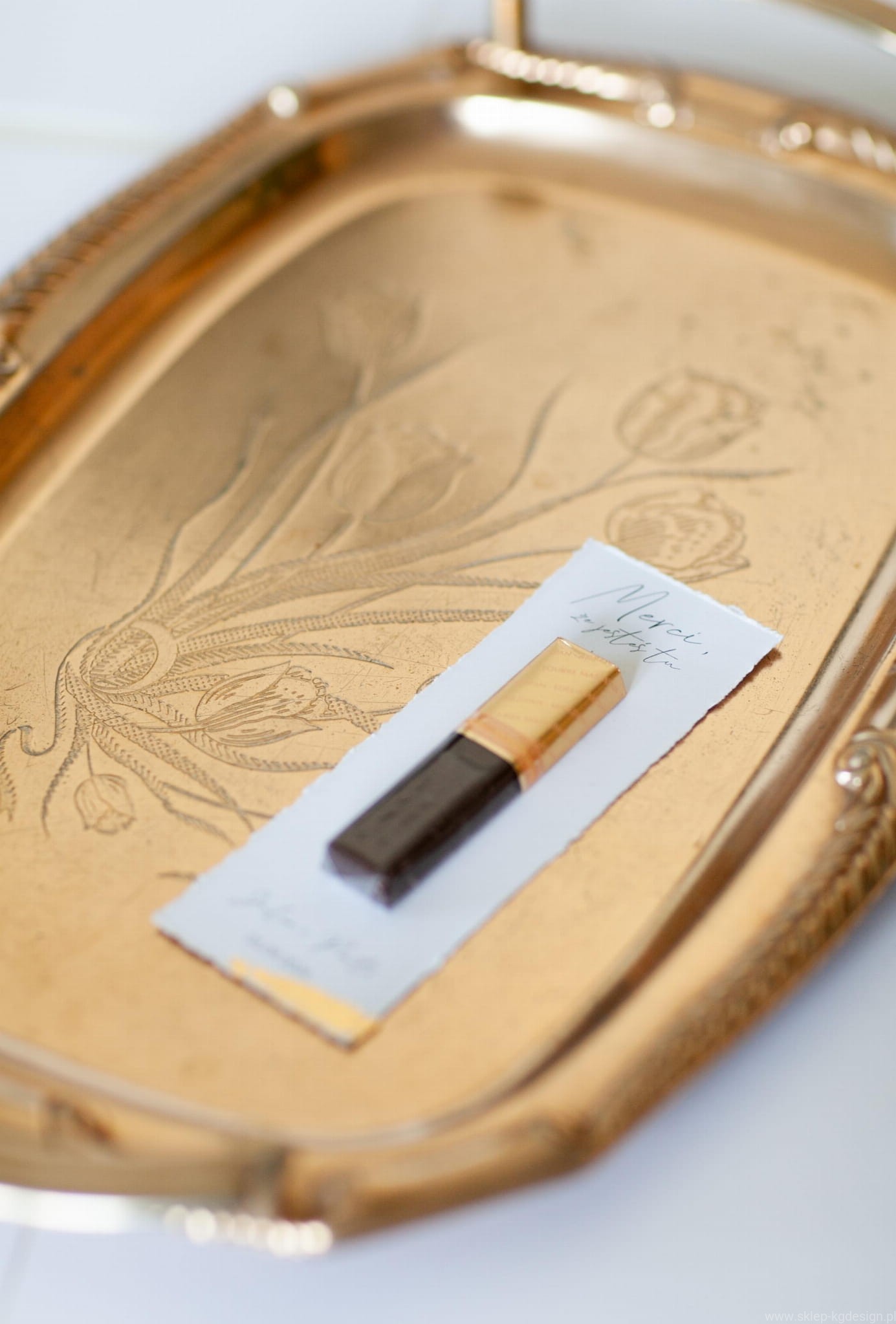 Podziękowanie dla gości - karteczka na czekoladkę Merci GOLD