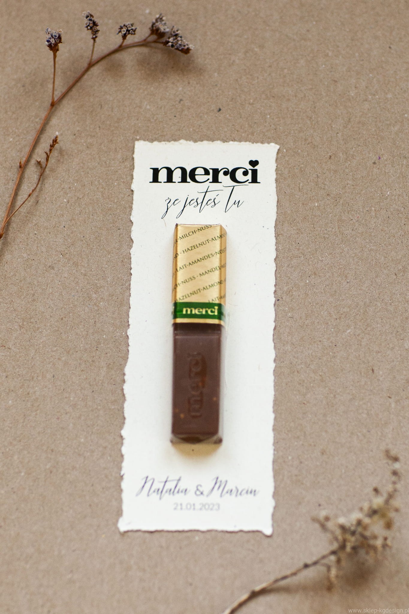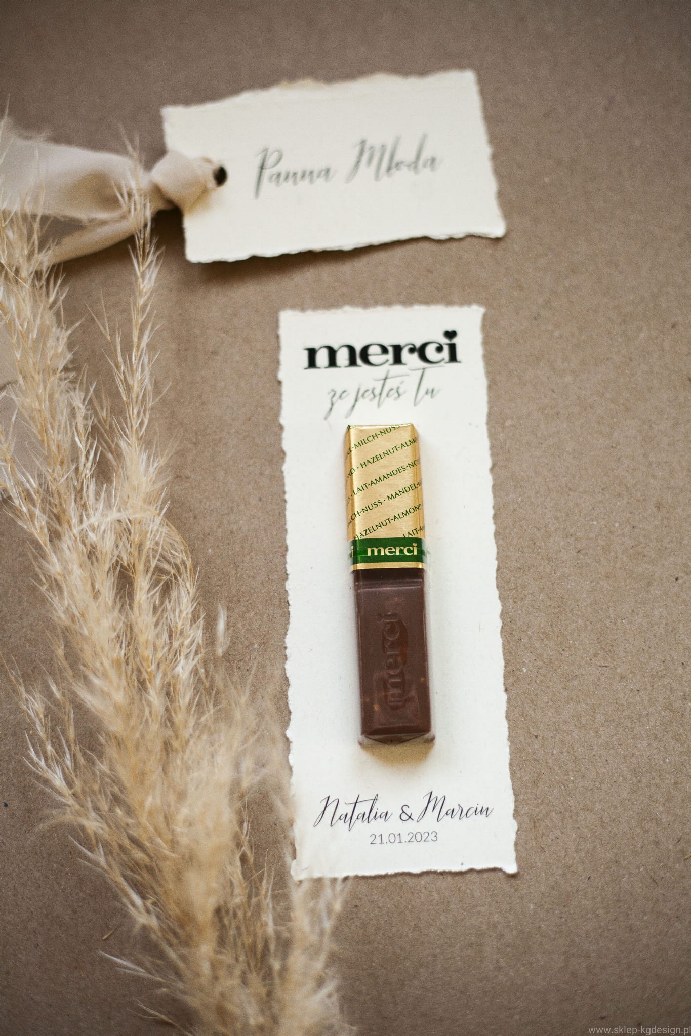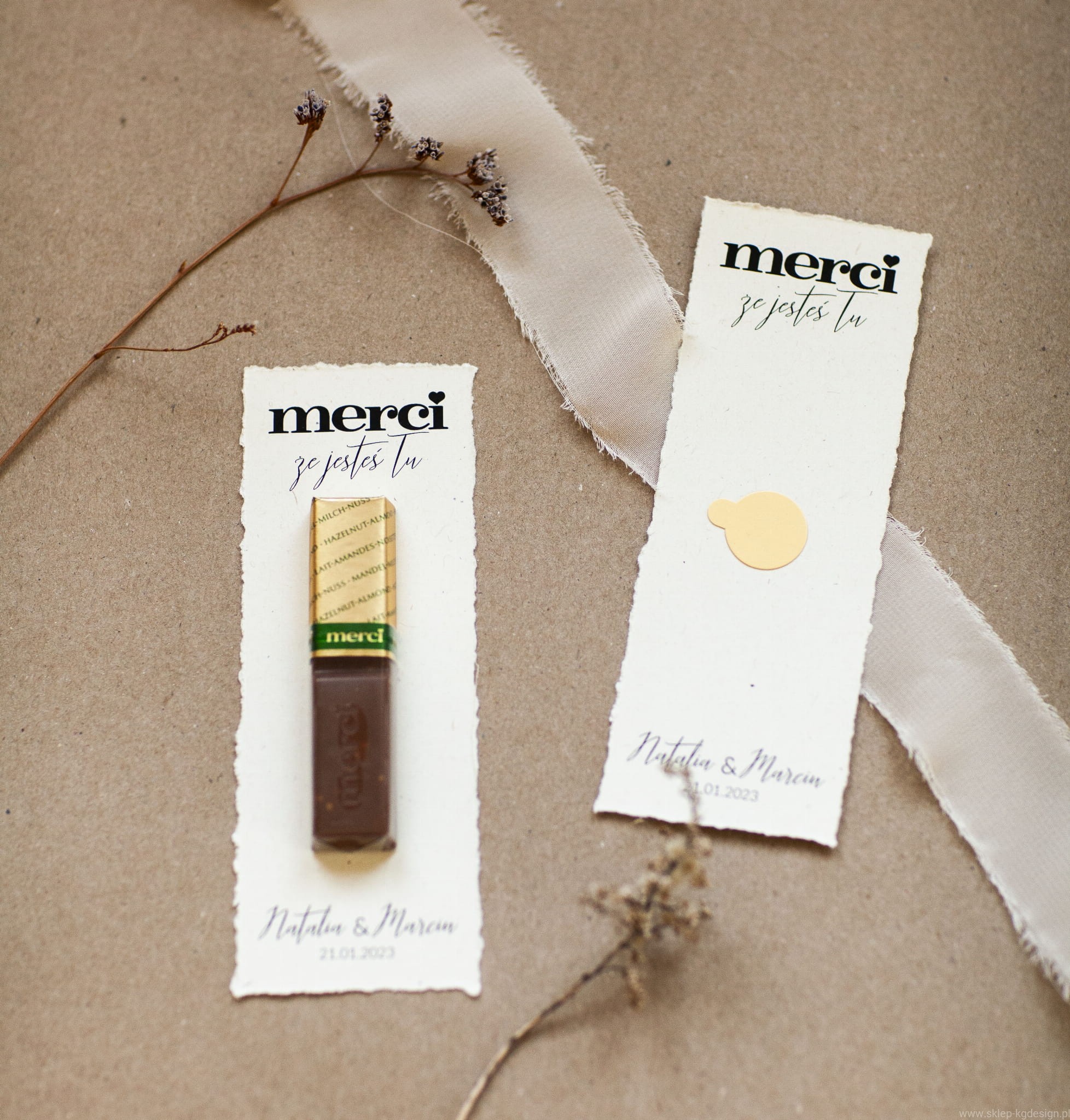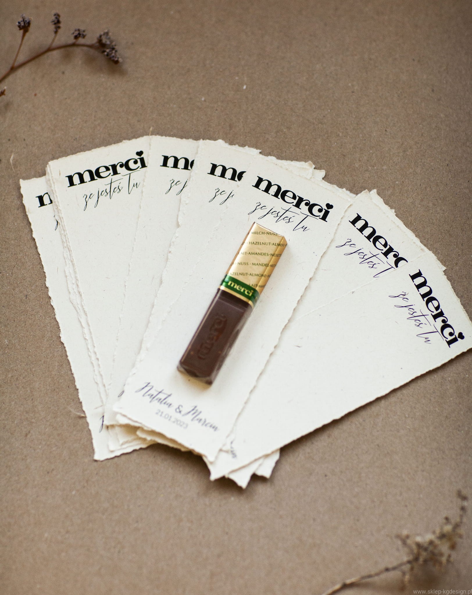 Podziękowanie dla gości - karteczka na czekoladkę Merci