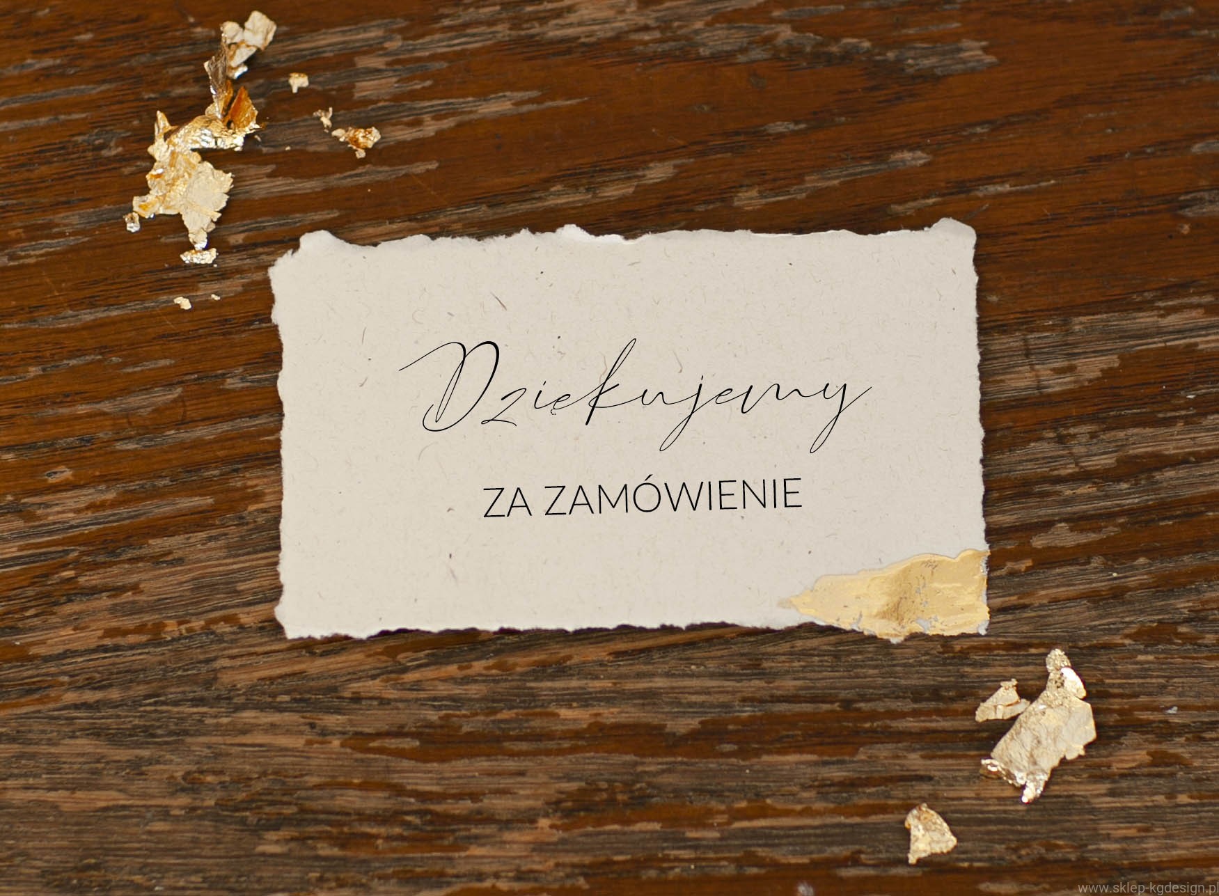 Podziękowanie jest w formie karteczki 8x4cm. Do kompletu możecie dobrać wstążkę szyfonową, ręczne złocenie/srebrzenie lub złoty/srebrny nit.