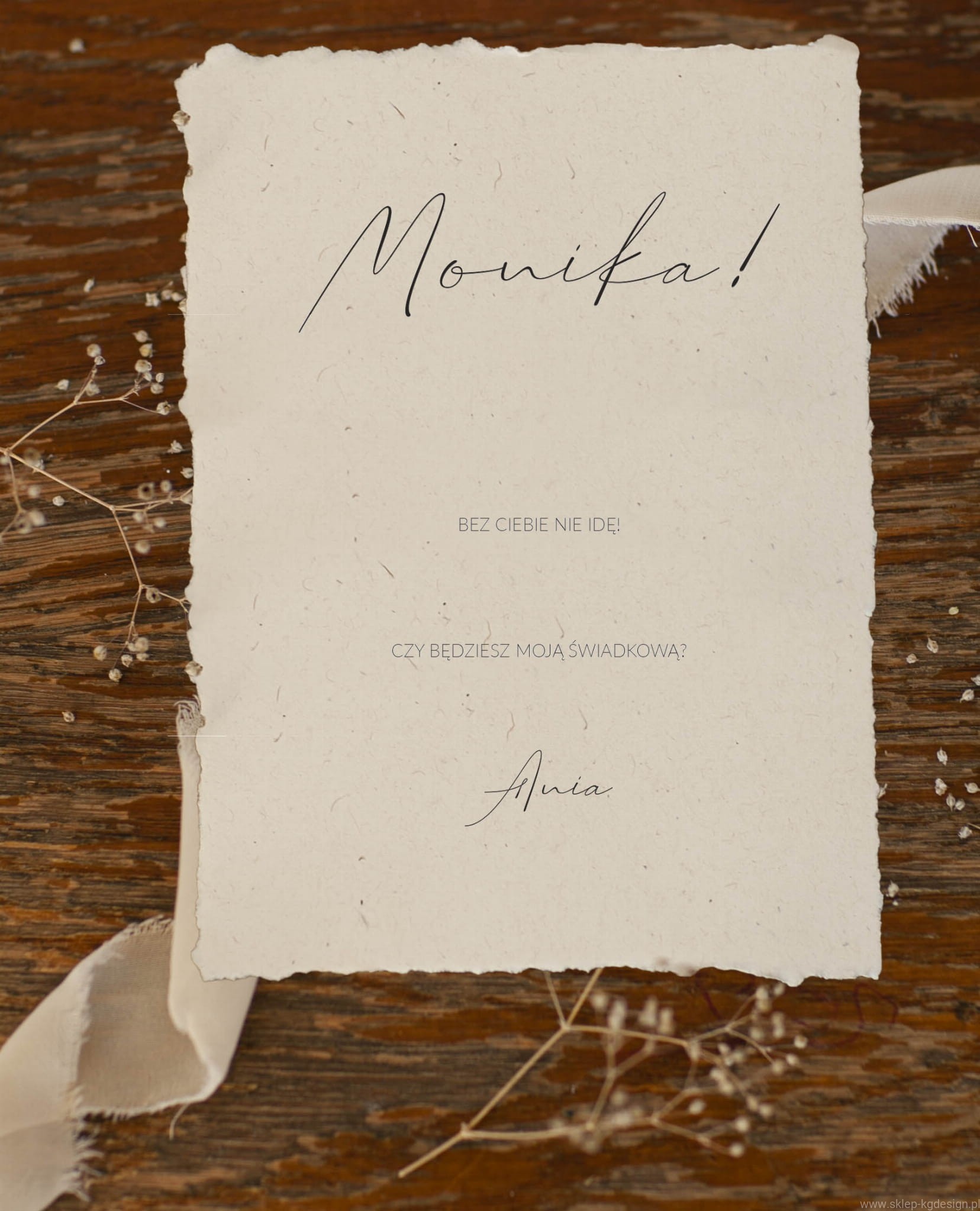 Do kompletu można zamówić kopertę oraz wstążkę szyfonową.