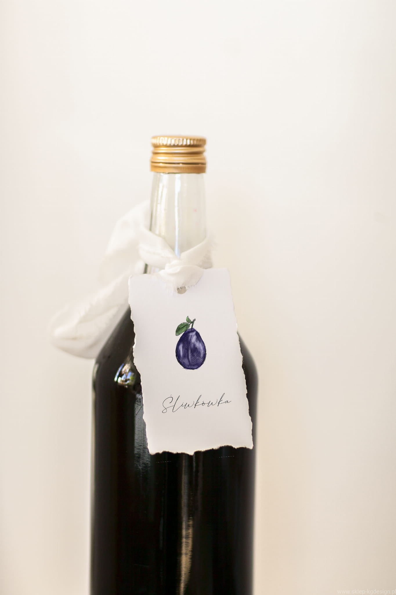 ŚLIWKÓWKA zawieszka na nalewkę, biała, minimalistyczna