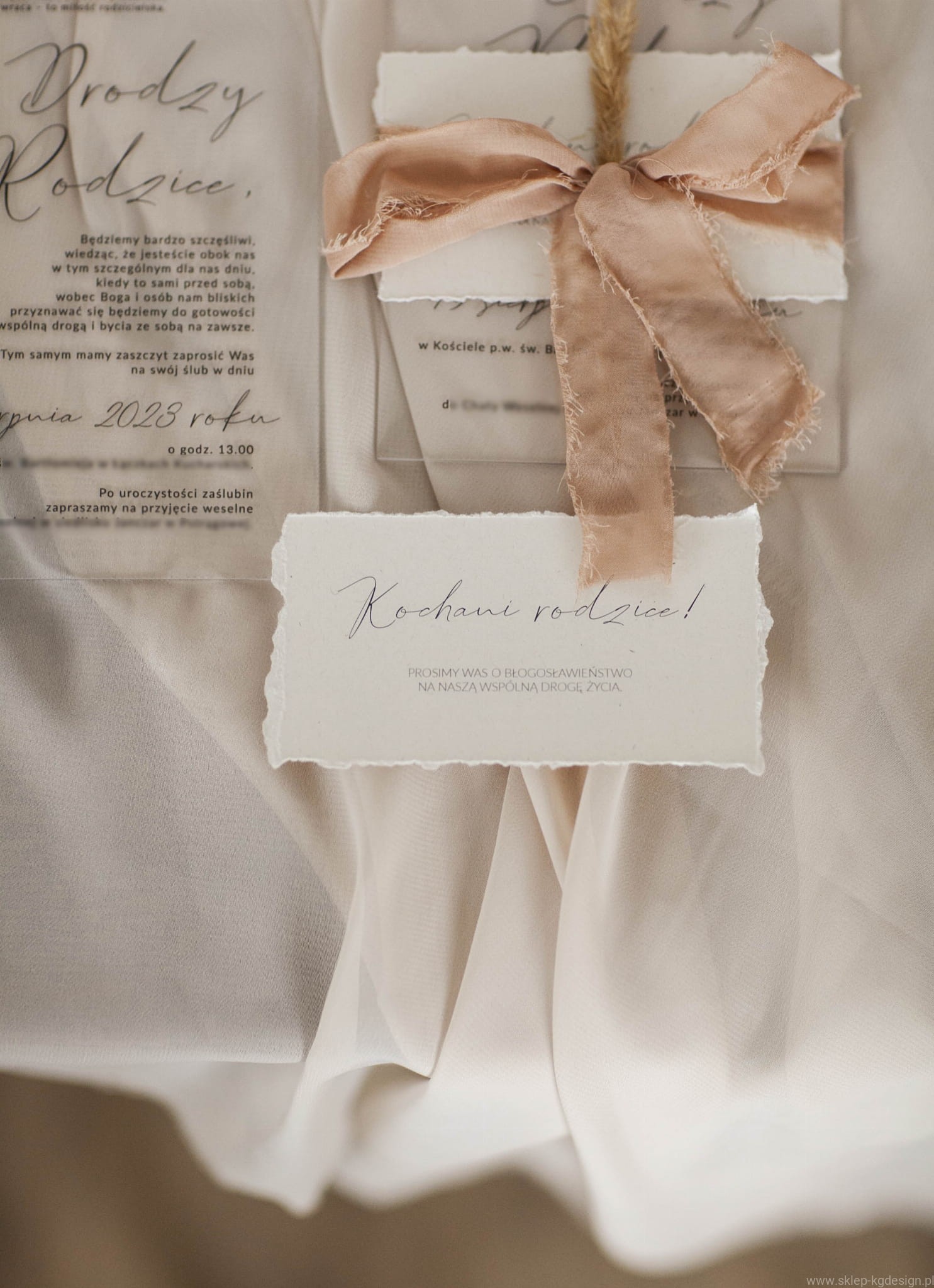 Wyjątkowe zaproszenie dla Rodziców z dodatkową karteczką z prośbą o błogosławieństwo.