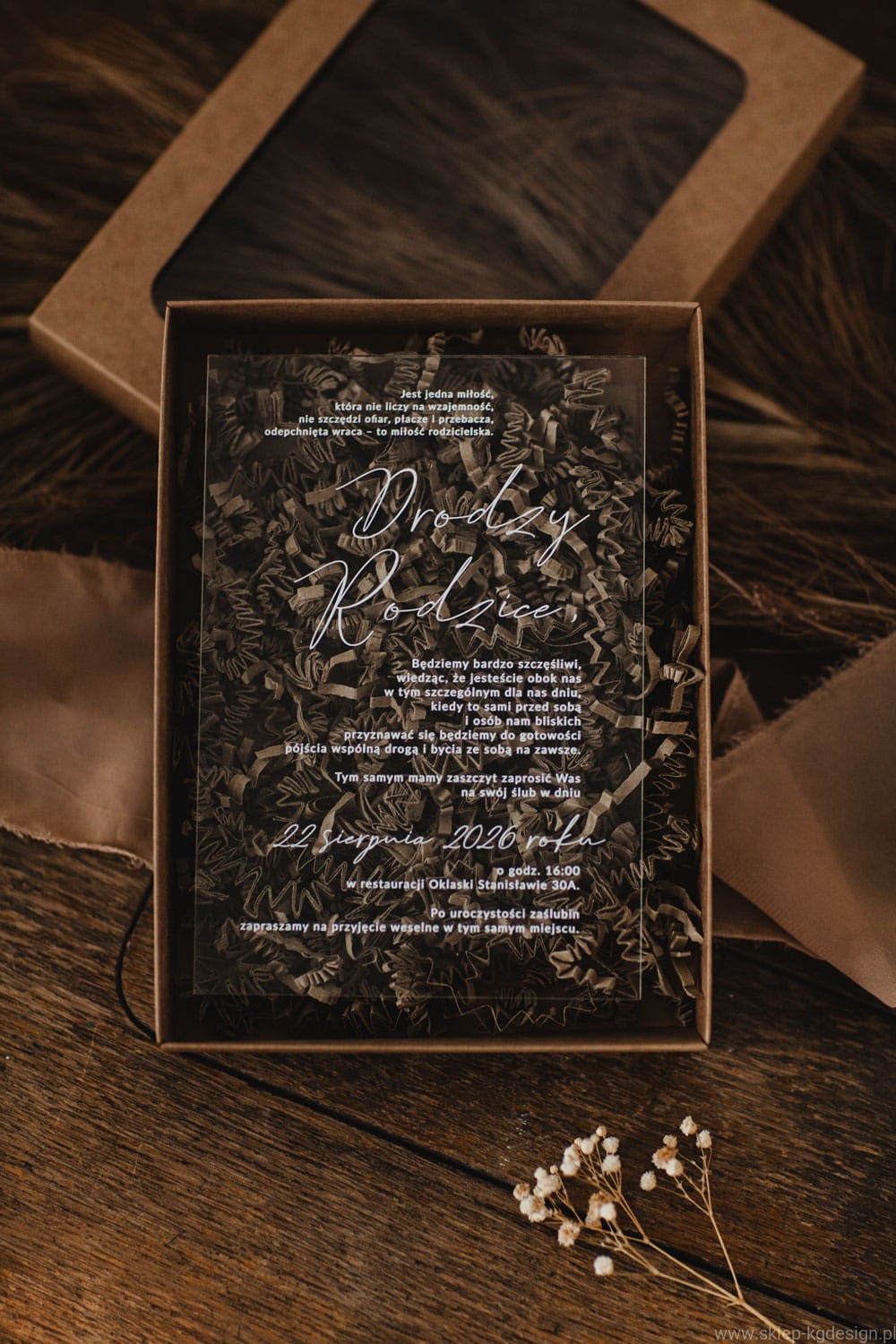 Zaproszenie dla Rodziców w pudełeczku eko BOHO II - szkło akrylowe