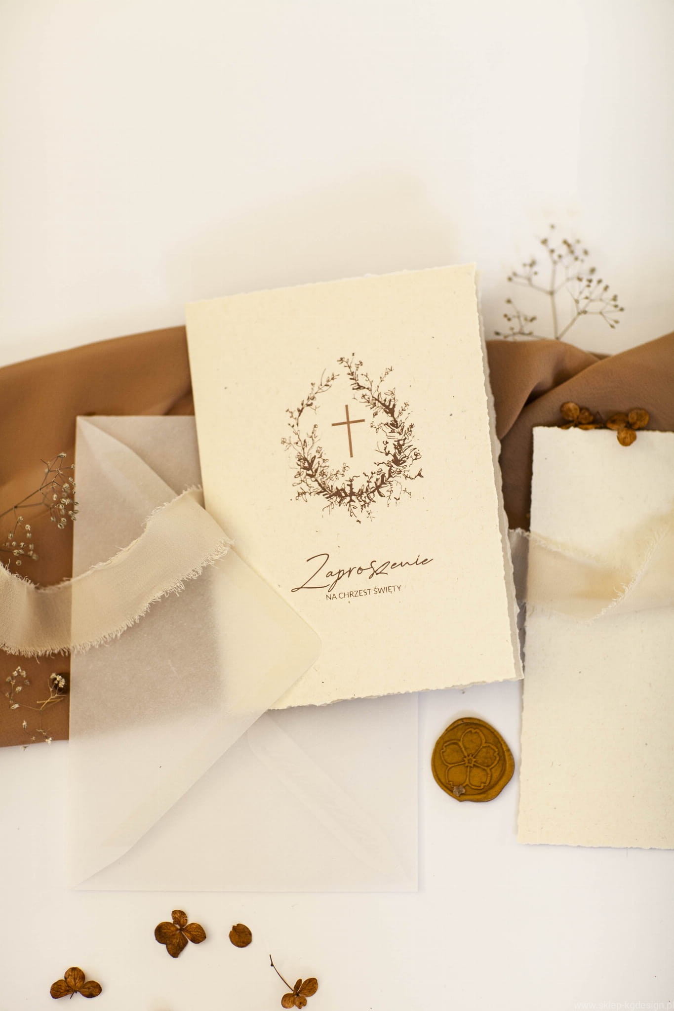 składane zaproszenie na chrzest lub komunię - BOHO