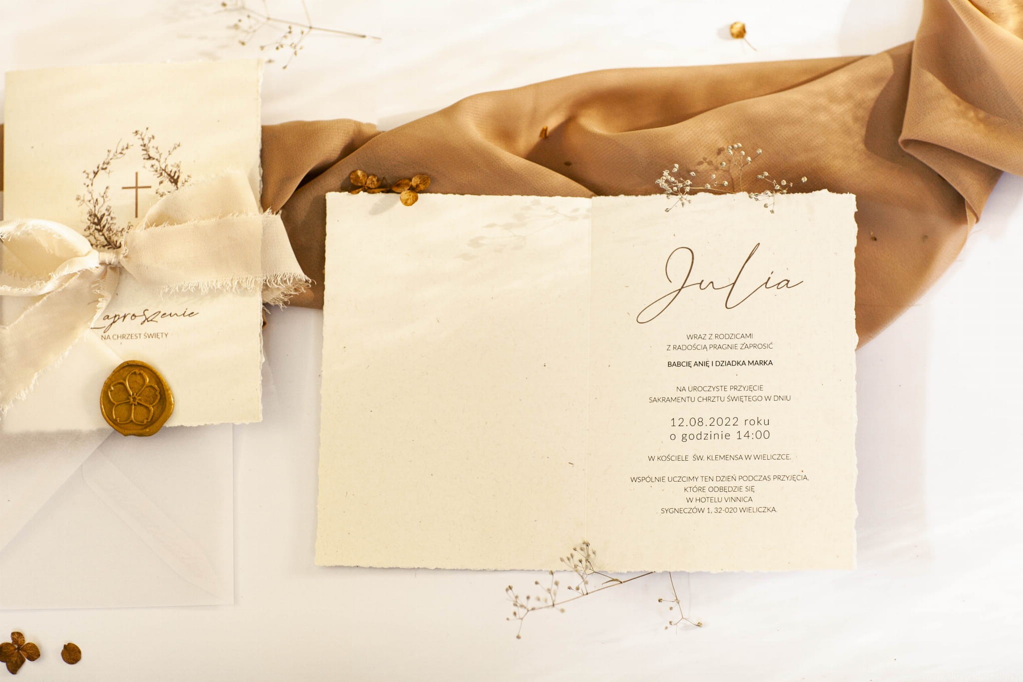 Cena nie zawiera dodatkowych elementów (wstążki, dodatkowej wkładki itd.). Te elementy możesz zakupić osobno.