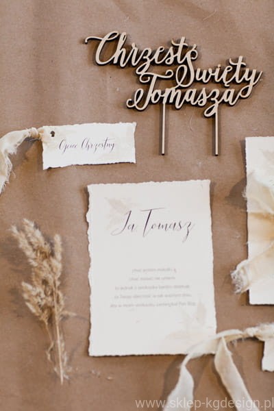 zaproszenie na chrzest lub komunię - trawa pampas, styl boho